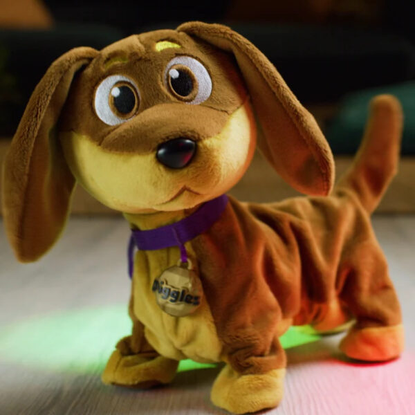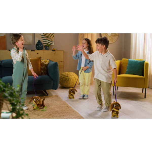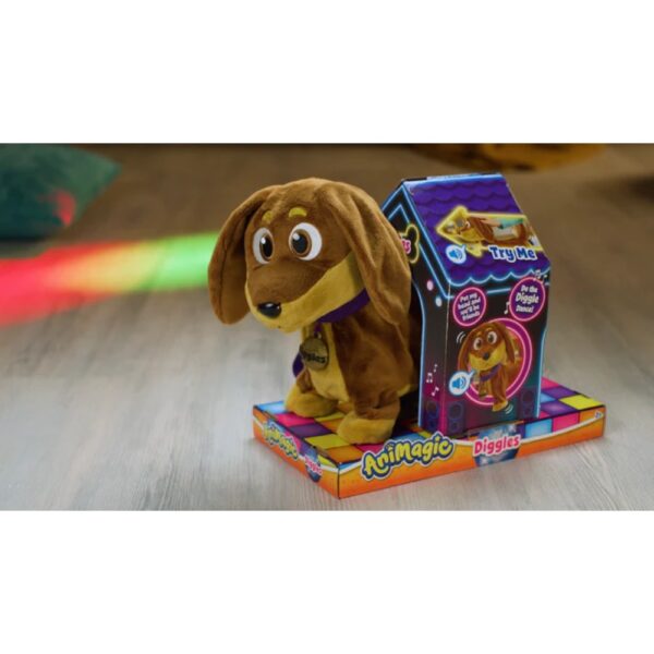 Introducing Animagic Diggles, the interactive plush toy that responds to touch by walking, dancing, barking, and wagging its tail. This adorable toy makes cute noises and movements that will delight children. It even comes with a leash for walking together. Just pop in 4 AA batteries (not included) and watch Diggles come to life. Suitable for ages 2 and up. #AnimagicDiggles #InteractivePlushToy