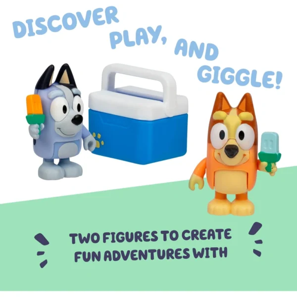 Bluey Ice Blocks Figure 2-Pack: Bring Bluey and her family into your home with the new ?Ice Blocks? Bluey figurine set of 2 featuring Bingo and Socks! Based on the beloved episode ?Charades,? these play figure playsets capture a sweet summer moment where Bingo and Socks cool off with refreshing ice blocks from the esky. Each of the cartoon figurines stands at 2.5 inches tall and features articulated arms and bodies, making it easy for kids to pose them for storytelling and imaginative play. Whether they?re sitting down for a treat or heading off on a backyard adventure, these figurines for toddlers are ready for fun! Made with durable, child-safe materials, these Bluey small figures are perfect for preschoolers ages 3 and up. No batteries are required?just open the pack and let the pretend play begin. Kids will love recreating scenes from the show or dreaming up brand-new adventures with Socks and Bingo from Bluey. This 2-Pack also includes a themed accessory to enhance the storytelling possibilities. It?s a great addition to any Bingo and Bluey toys collection and makes an excellent gift for birthdays, holidays, or just because.?