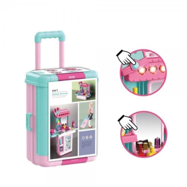 Package Included: Hairdryer, Mirror, Brush, Lipstick, Nail Polish, necklace, bracelet, finger ring and ect. It is packaged with beautiful suitcase.
