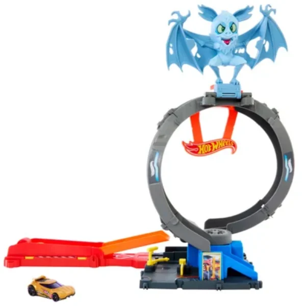 A creepy bat has taken over the Hot Wheels City tyre workshop. Only a particularly daring stunt vehicle will be able to put the monster to flight. Race your vehicles over the ramp and try to hit the bat. Or you can ignore the fluttering beast and simply speed through the loop at full throttle onto other parts of the track in your collection.