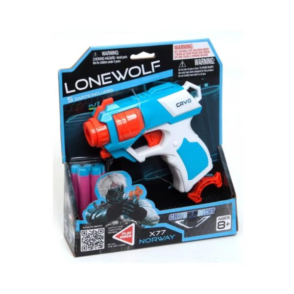Cryo agent lone wolf dart gun is easy to operate and sight for accuracy. Includes blaster, 5 darts. Practice your aiming skills with these fun toy guns. This is an amazing foam blaster toy gun for 8+ year old kids, teens and even adults that are fanatics of toy guns. It is also a great birthday christmas gift.