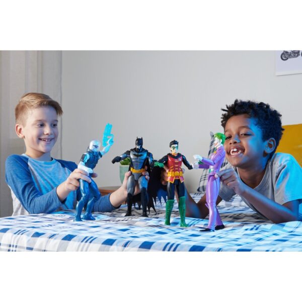 The Batman 12″ Action Figures 4-Pack features four detailed figures: Batman, Robin, and two Super-Villains, bringing the thrilling world of Gotham to life. Each action figure stands at 12 inches tall and boasts 11 points of articulation, allowing for dynamic posing and play.