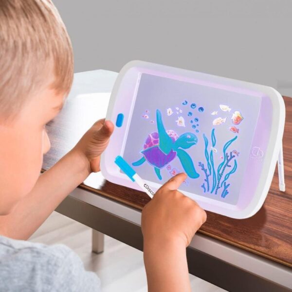WASHABLE MARKERS THAT INTERACT WITH LIGHT: Comes with 6 washable markers that interact with the light to create dynamic, illuminated masterpieces.