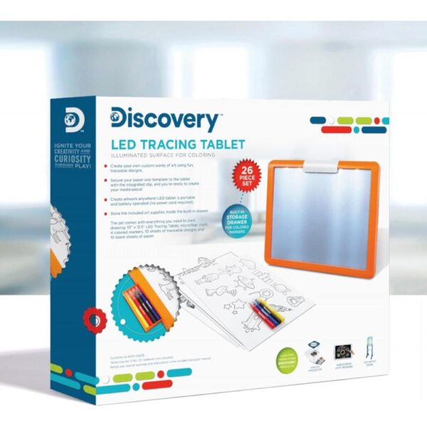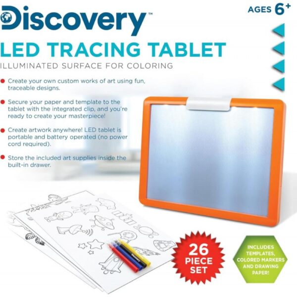 Bring out your inner art with Discovery’s LED Tracing Tablet! Just set up the paper and template on your tablet using the tongs and you’re ready to create your own artwork!