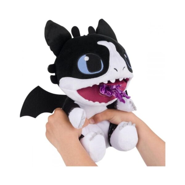 Thunder is designed for comfort and fun. Made with high-quality, squishy materials, this plush dragon features intricate embroidered details that bring the character to life. With just a squeeze of Thunder’s belly, you can launch a 15.2 cm long blue cloth plasma flare, adding an interactive element to your playtime. Ideal for fans of the series, this plush toy inspires countless adventures in a fantasy universe.