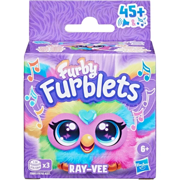 Wah! Another mysterious and musical FURB-nomenon has come to our world: the Furblets! Share a smile and a jam session anywhere you go with these mini Furby electronic toys for girls and boys 6 years and up. With over 45 fun tunes, sounds, and Furbish phrases to discover, these little friends are filled with big personalities. Ray-Vee has rainbow fur and plays electronica themed songs fit for a dance party. Clip them to a backpack or other travel bag with the keychain clip to bring the Furblets party anywhere you go. Furby and all related properties are trademarks of Hasbro.