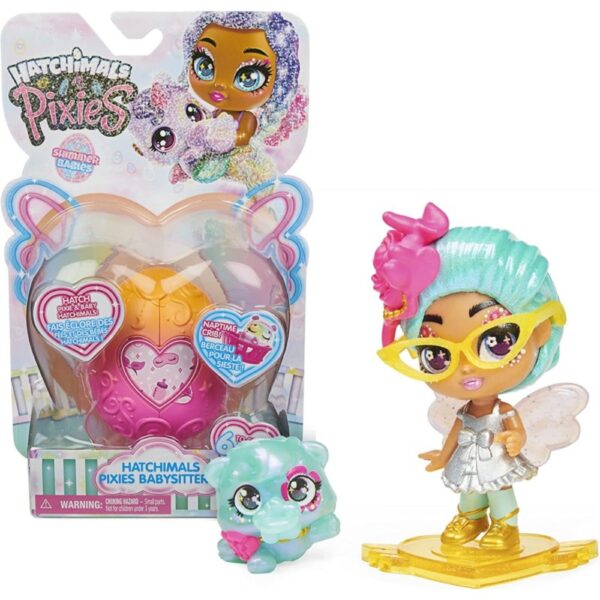 Discover the magical world of Hatchimals with the Pixies Babysitters assortment! This delightful playset features a Pixies babysitter and her exclusive baby Hatchimal, complete with accessories for endless imaginative adventures.