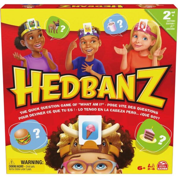 ? Then, play by asking questions with ?yes? and ?no? answers as your try to guess what?s on your card. Be the first player to collect 3 Scoring Badges to win! Hedbanz is a must-have in your collection of board games for kids 8-12, but it is fun for everyone ages 6 and up. For 2-6 players, bring along when you are in need of girls toys age 6-8, family board games, or games for kids. Hedbanz is a social activity for the entire family- a true staple for all generations. It is the classic picture guessing game that has been around for years! Whether you are searching for kids board games, fun games, or board games for kids 6-8- you are sure to laugh out loud with this new edition of Hedbanz full of color new cards and adorable headbands.