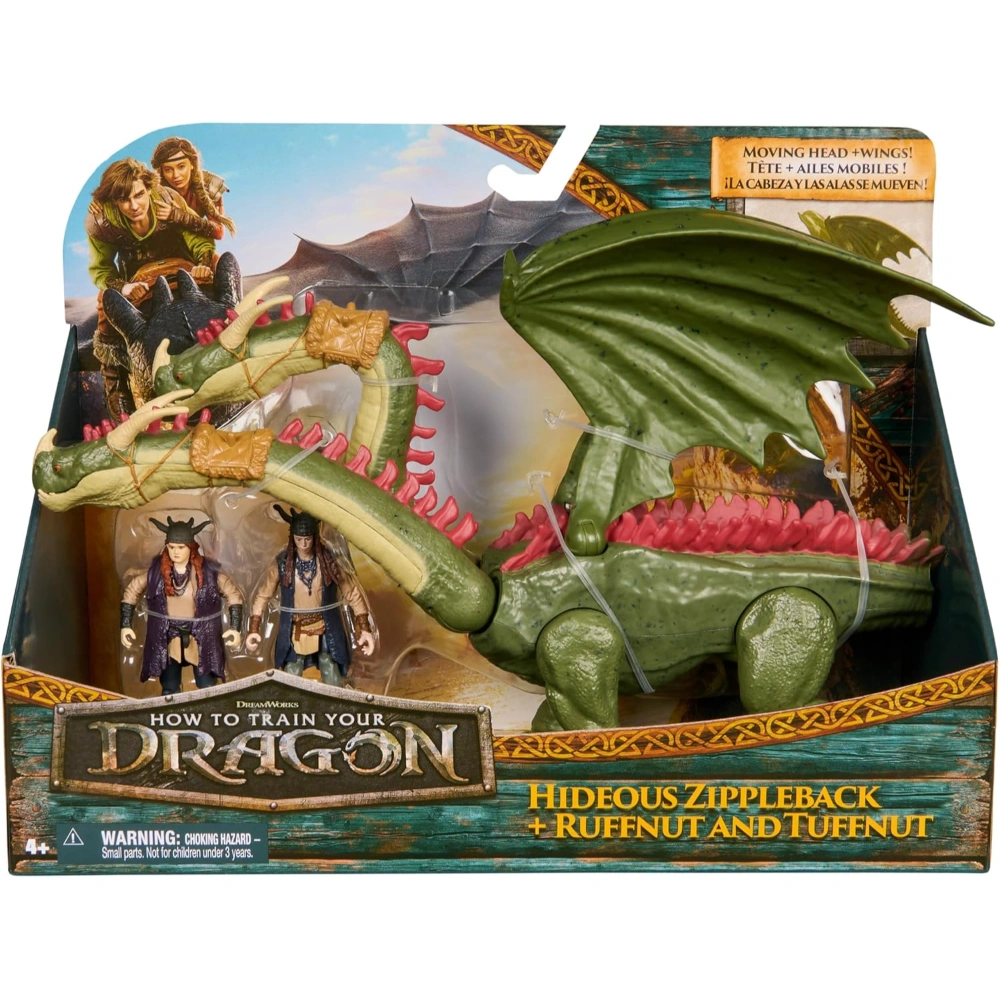 HTTY Dragon Movie Barf and Belch Twins Collectible Figure Toy is an epic playset that brings the beloved dragon duo from Berk to life. This 48cm dragon figure with zip-back wings comes with 8cm Ruffnut and Tuffnut rider figures, all featuring movie-accurate detailing and movable limbs for dynamic play. Kids can attach the Viking figures to the dragon’s saddle pegs to recreate scenes or invent new adventures. The realistic wings and posable joints encourage imaginative storytelling and heroic role-play. Perfect for fans aged 6 plus who want to dive into the How To Train Your Dragon universe.