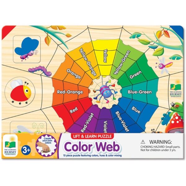 The Lift & Learn Color Web is an engaging educational puzzle designed to introduce preschoolers to the world of colors, shades, and color mixing through interactive play. With its vibrant illustrations and tactile features, this puzzle makes learning fun and accessible.