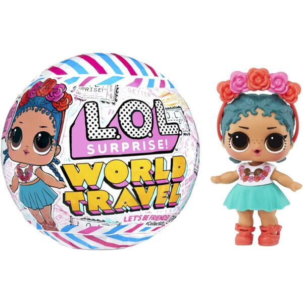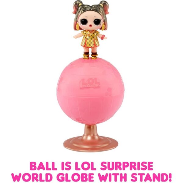 Unbox 8 exciting surprises with each LOL Surprise World Travel doll! Each doll comes complete with travel-themed accessories, including a unique passport, a secret message, and a sticker sheet. The ball packaging doubles as an LOL Surprise World globe, complete with a stand for display.