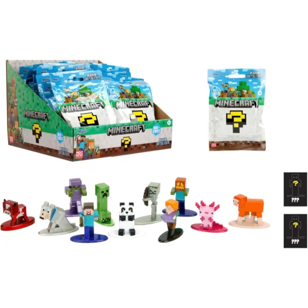 Minecraft Collectable Figures in Blind Pack: Which figure awaits you? ? Box contents: 1 Minecraft figure in mystery bag, wave 5 ? Size: approx. 4 cm (1.65 inches) ? Material: Metal (The Cast) ? Recommended age: Minecraft toy from 3 years ? Officially licensed fan item from Mojang and Microsoft. Small figure ? big surprise! Heroes, animals, enemy mobs & exclusive special figures: the 5th Welle Jada Toys model figures delight again with a varied selection of iconic Minecraft figures! But which of the 13 decorative metal figures is hidden in your surprise bag? The 13 Minecraft toy figures from Jada Toys Wave 5: Panda, Orange Sheep (Sheep), Pink Axolotl, Zombie with Enchanted Armour, Baby Mooshroom (Mushroom Cow), Zombie with Pumpkin, Tamed Wolf (Tamed Wolf), Mossy Skeleton (Skeleton), Creeper, Alex with Enchanted Crossbow, Steve with Gold Sword + 2 selves ColleColleColleColleColleColleColle!