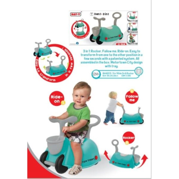 Product Overview: The Motor Town Ride-On is a versatile toy designed for toddlers, offering three different ways to play: walk, ride, and scoot. Made from recycled materials, this eco-friendly ride-on provides hours of fun while supporting physical development and imaginative play.
