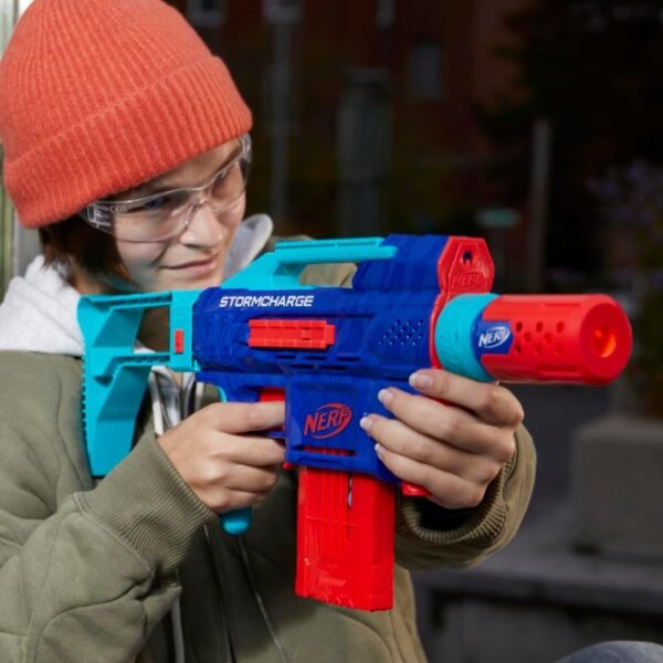 - Power Up: The Stormcharge blaster features motorized dart blasting that enhances play with rapid-fire action. Simply hold down the acceleration button to power up the motor and pull the trigger to fire darts.