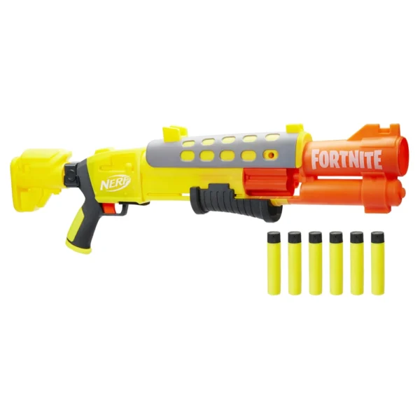 Jump into battle with Nerf Fortnite blasters inspired by the blaster and skins from the Fortnite video game! The blaster features a rotating 6-dart magazine and comes with 6 Nerf Mega AccuStrike darts for enhanced precision ? this is the first Nerf Fortnite blaster with Nerf AccuStrike Mega darts. Fire 6 darts in a row! Slide the bolt back and forth and pull the trigger to fire 1 dart at a time.