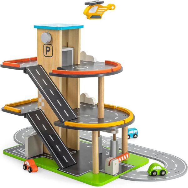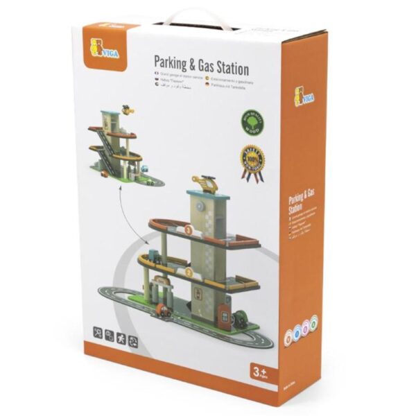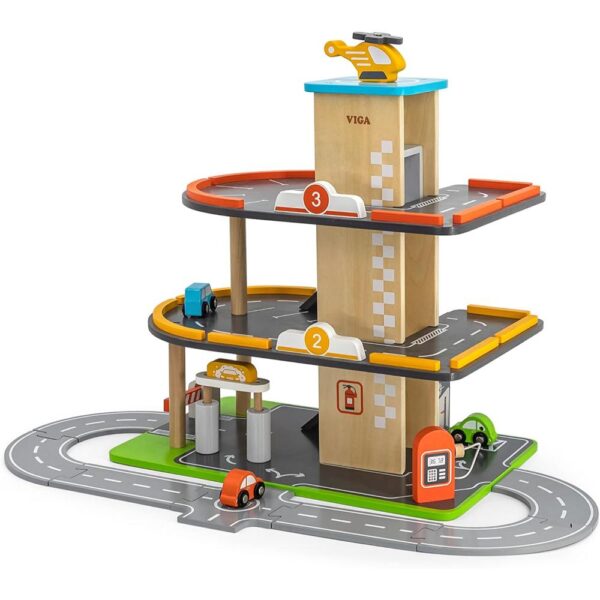 Perfect for little ones. This multilevel wooden parking and gas station has so many activities.