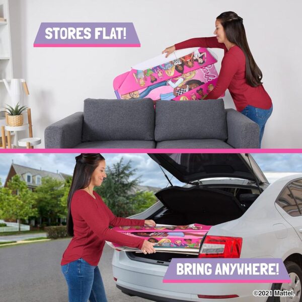 SPACESAVER. Tired of toys piling up. Say goodbye to messy playrooms and crowded living rooms. Pop2Play, then pop it away. Folds flat so you can easily put it away when you?re done.