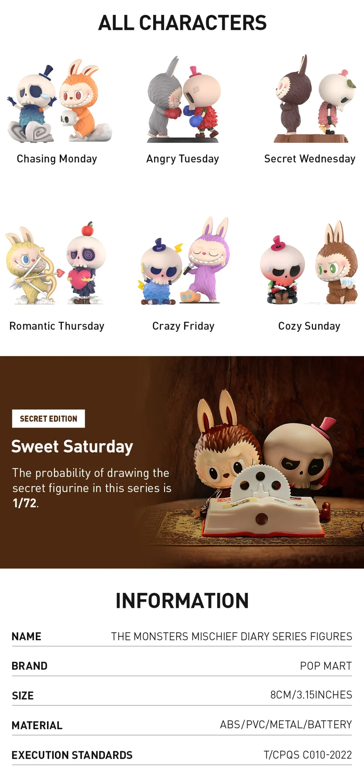 THE MONSTERS Mischief Diary: Blind box toys are collectibles that come in a sealed box, with the content unknown to buyers until they open it. This collection contains 6 regular figures, and 1 hidden edition (Sweet Saturday).