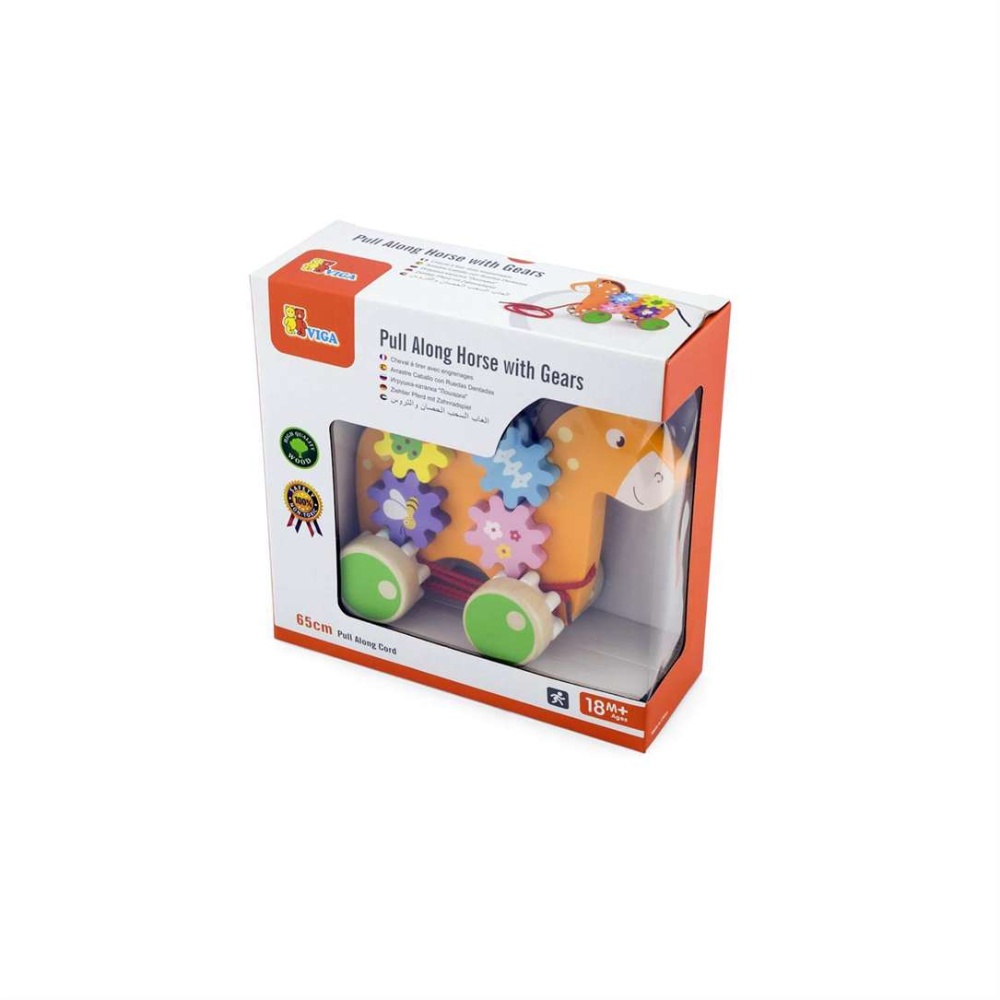 The Pull Along Horse & Gears by VIGA Toys is an engaging toy designed to stimulate motor skill development and provide educational fun. This pull-along horse features colorful gears on its body that spin as the horse moves, adding a visually stimulating and interactive element to playtime. Made with non-toxic paints and inks, this toy complies with major international safety standards, ensuring it is safe and enjoyable for young children.