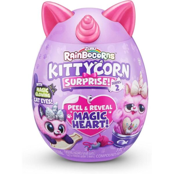 Rainbocorns Kittycorn Surprise are destined to be your new paw-fect pal! These kitties come with eyes that glow in the dark and a magic peel and Revealsheart that tells you what your kittycorn loves! There are 10 surprises inside including gooey kitty litter compound and stickers! Adopt all 6 kittens, including the rare big bow kittycorn!