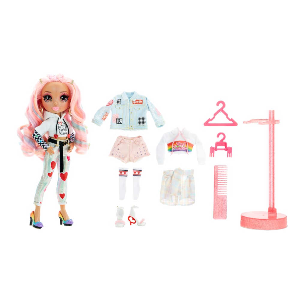 Rainbow High’s Kia Hart is the perfect Valentine’s Day-inspired fashion doll, dressed in heart-themed outfits that exude sweetness and glamour. With her premium design, Kia features beautiful multicolored hair and detailed fashion. This fully posable doll comes with two complete outfits and accessories that can be mixed and matched, providing endless styling possibilities. Kia is not only the go-to fashionista of Rainbow High but also the doll to display, thanks to the included doll stand.
