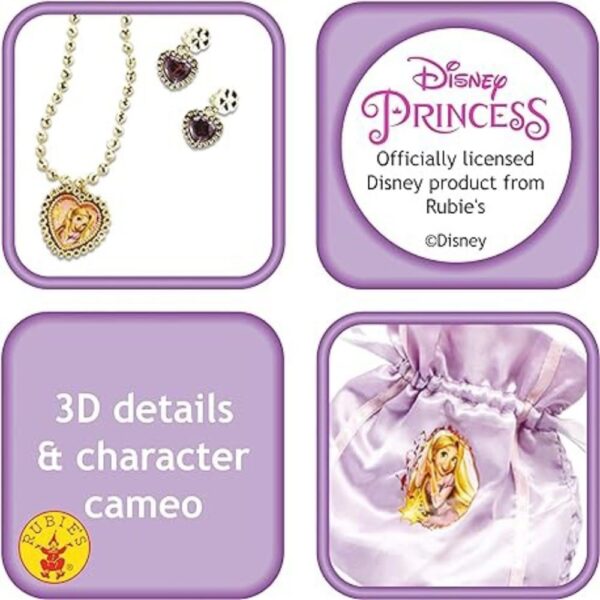 With drawstrings to keep them safe inside the pouch, Rapunzel will pick her moments to wear her heart-shaped necklace and earrings. Best not let Mother Gothel see.