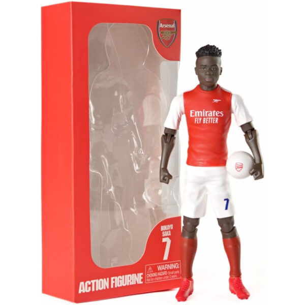 The 20cm Banbo collectible figure is crafted with precision, ensuring it stands out as a true testament to quality and authenticity. Featuring articulated movement for maximum poseability, the figure’s detailed Arsenal kit and premium finishing offer both visual appeal and durability. Every aspect has been thoughtfully created to celebrate Saka’s dedication and talent, making it an ideal addition to your football memorabilia.