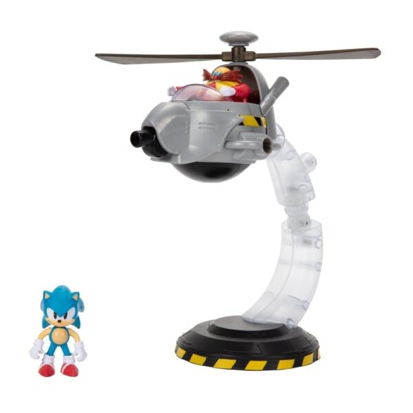 Along with his friends Tails, Knuckles and Amy, Sonic speeds around the planet to battle injustice and defeat his arch nemesis, the evil Dr. Eggman. Egg Mobile Battle Set The Egg Mobile Battle Set is sure to be a hit with kids and Sonic fans! You can recreate the action from the games with this customizable battle set and its playable features. Sonic faces Dr. Eggman in the Egg Mobile for an epic final battle scene. The Egg Mobile has attachments for the Egg Helicopter, Egg Digger, Egg Wrecker, and Egg Hammer. Battle Dr. Eggman your way as the Egg Mobile flies around the room in an effort to finally defeat Sonic. Explode the Egg Mobile as Sonic jumps onto the windshield. Playset comes with 14-unique pieces and can be customized into over 25 configurations. Reassemble to transform the Egg Mobile for continued play or display proudly. The Egg Mobile is kid-powered and stands at over 8-inches high. Includes a 2.5 Inch Sonic figure and an exclusive 2.5 Inch Dr. Eggman figure. Build your Egg Mobile Battle Set into a Sonic worldby adding more Sonic friends, playsets and accessories, (each sold separately). Suggested for kids ages 3 years and up.