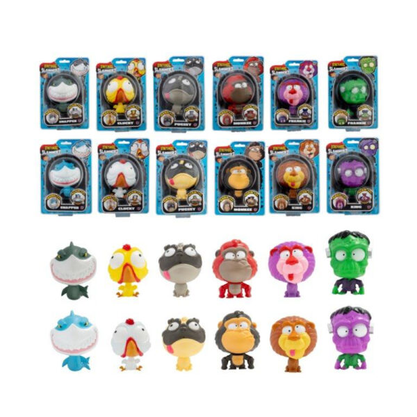 The Stretcherz Slammerz collection includes 12 distinct characters, each with its own unique design and personality. From the fearsome Shark to the cuddly Pug, the brave Lion to the monstrous Frankenstein, and the playful Monkey to the quirky Chicken, kids will love collecting them all. Encouraging imaginative scenarios and storytelling, these characters are perfect for solo play or for sharing with friends. Stretcherz Slammerz are more than just toys; they are companions that spark creativity and laughter. These characters offer endless fun, squish them, slam them, and collect them all!
