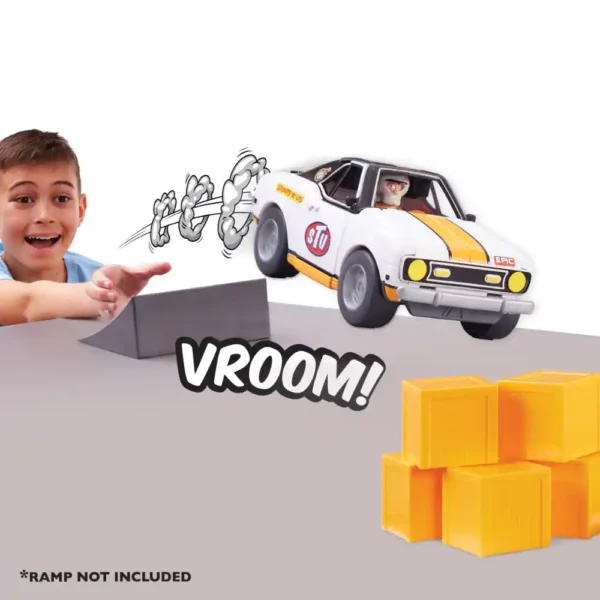 The Stuntman Stu Race Ace Stunt Car is the perfect toy for kids and adults alike who want to channel their inner daredevil. This break-apart stunt set lets you create your very own gravity-defying stunts right from home. Want to test how high Stu’s car can jump? You got it! Ready to see an epic collision? This set is built for it! The car is designed to break apart upon impact, giving you endless opportunities to crash, smash, and blow it apart again and again.