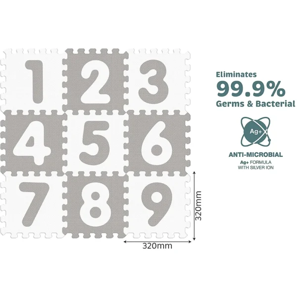 Sunta Antibacterial Number Puzzle Mat – 9-Piece EVA Foam Interlocking Play Mat for Kids – Safe, Fun, and Educational with Silver Ion Technology