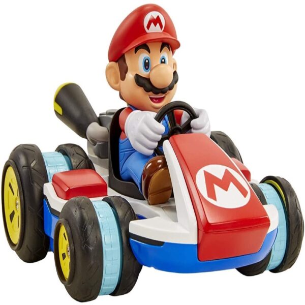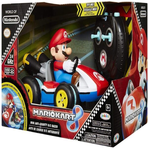 It would shrink down of course! The worldof NINTENDO is happy to bring you the new Mini RC racer. Have Marioace in standard mode or flip into anti-gravity mode to perform drifts and tricks at the Press of a button. Now with added performance you can even pop Wheelies and do 360 spins! With up to a 100′ Range This RC can go the distance! Do not use The worldof NINTENDO anti-grav RC in a thunderstorm; actual lightning will not cause the car to shrink down to a mini version although that would be awesome!.