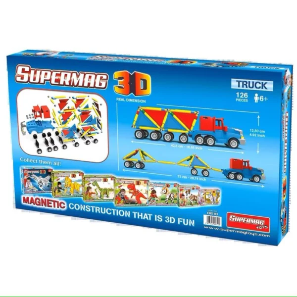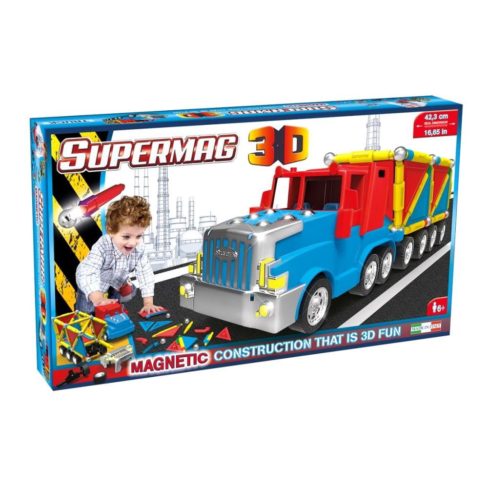 Experience the thrill of building your very own Supermag 3D Truck! This remarkable set takes creativity and construction to new heights. Inside, you’ll find a wealth of magnetic components, specially designed to let you craft an impressive 3D truck that’s both fun and functional. With Supermag 3D, the excitement doesn’t stop at building ? it’s all about interactive play. Once your truck is assembled, watch it roll, transport small objects, and embark on countless adventures. Whether it’s zooming around your playroom or becoming part of imaginative play scenarios, this Supermag 3D Truck set offers endless enjoyment. As you create and play, you’ll develop important skills like problem-solving, spatial perception, and fine motor skills. Get ready for a magnetic journey filled with learning and entertainment. Start building your Supermag 3D Truck today and let the fun ride on!
