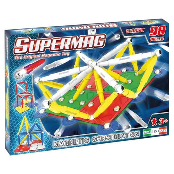 Supermag Classic primary is the line designed for children from 3 years who want to play while enjoying and developing at the same time manual and inventive. Educational and educational: designed and studied with the aim of facilitating children at the initial moment of the construction of any object, this line allows to realize the foundations of any structure that you want to create. The addition of the bases and small circles to the classical balls allows children to build lighter structures but at the same time more stable allowing them to move easily. These new patented elements can also be used within objects to strengthen the structure, increasing the difficulty level during construction and giving a new and unique gaming experience. Stability and solidity: the structures are solid and resistant, but easily removable and reconstructable, guaranteeing hours of pure fun. The addition of the bases and small circles allows children to build lighter structures and at the same time more stable.