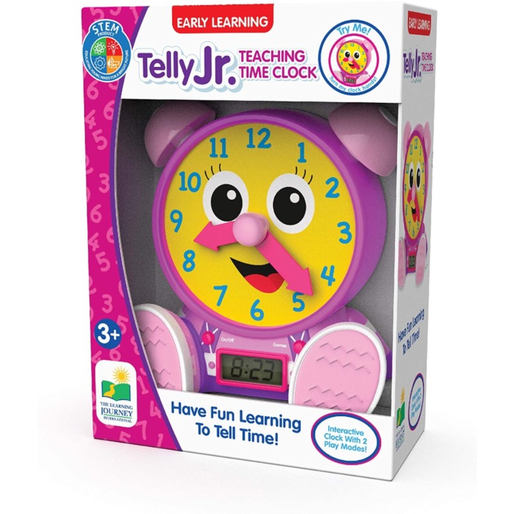 Transform the way your child learns to tell time with the Telly Jr. Teaching Time Clock (Pink) — where education meets fun!