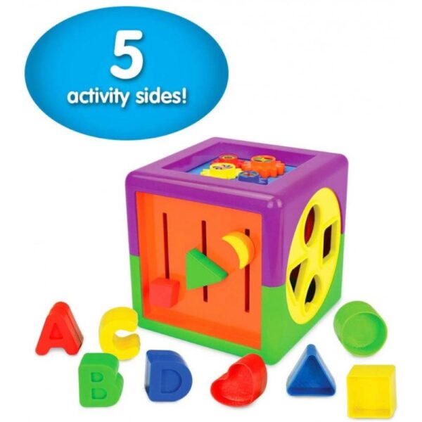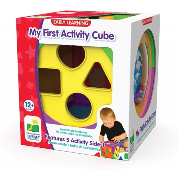 KEY FEATURES ? My First Activity Cube features five interactive activity sides, convenient storage inside the cube, and fun and colorful shapes and letters that are easy to grasp and fit into the A, B, C, D and heart, circle, square, and triangle cutouts. Measures 5.75? long x 5.75? wide x 5.75? high, weighs 1.05 lbs.