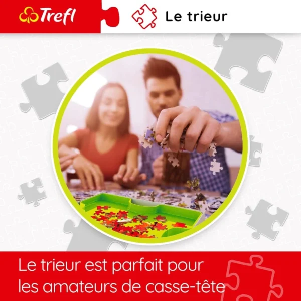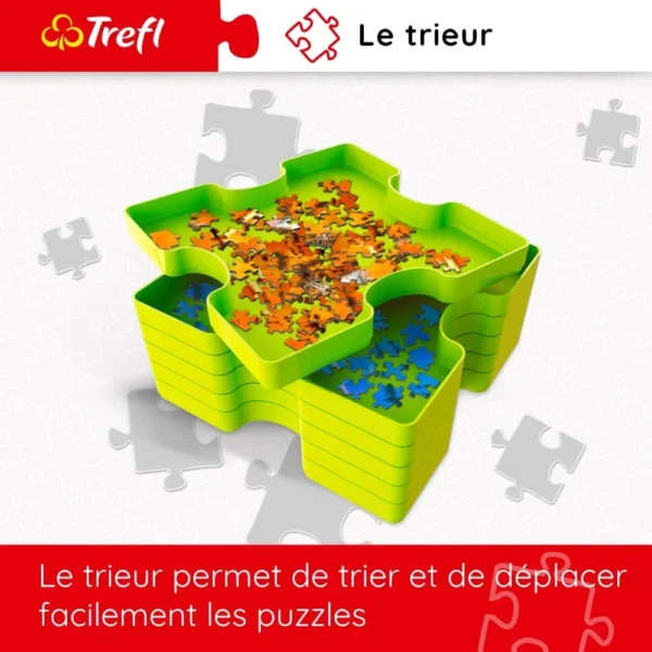 The puzzle sorter from Trefl will allow you to easily sort the pieces of any puzzle game. Separate by color or edge! The sorter allows for efficient organization – simply connect containers to save space and organize your stacking space. It also allows you to easily store and transport small parts, protecting them from loss. The matching box will allow you to easily store and transport the sorted puzzle containers. Each tray is perfectly finished, and the matte anti-glare surface inside each container eliminates glare.
