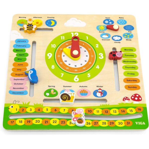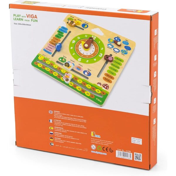The Calendar by VIGA Toys is an educational game designed for interactive and independent play. This model toy calendar helps children learn about days, months, and time in a fun and engaging way. It is suitable for playing alone or with friends and makes an optimal gift for young learners. The calendar encourages understanding of temporal concepts and supports educational development.