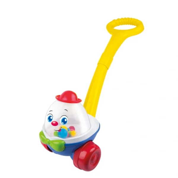 Amusing push-along with popping balls. Push to make the balls jump around the dome and see the wobbly action.