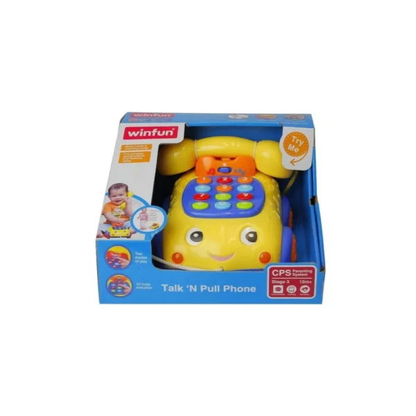 Winfun telephone for your baby with Light and sound. This toy will help to develops your babys’ skills and hand eye co ordination. The number pad on the phone helps your kids to learn numbers easily and improves their learning capacity. Your kids can pull this Talk N Pull Phone and move around the house without sitting idle.