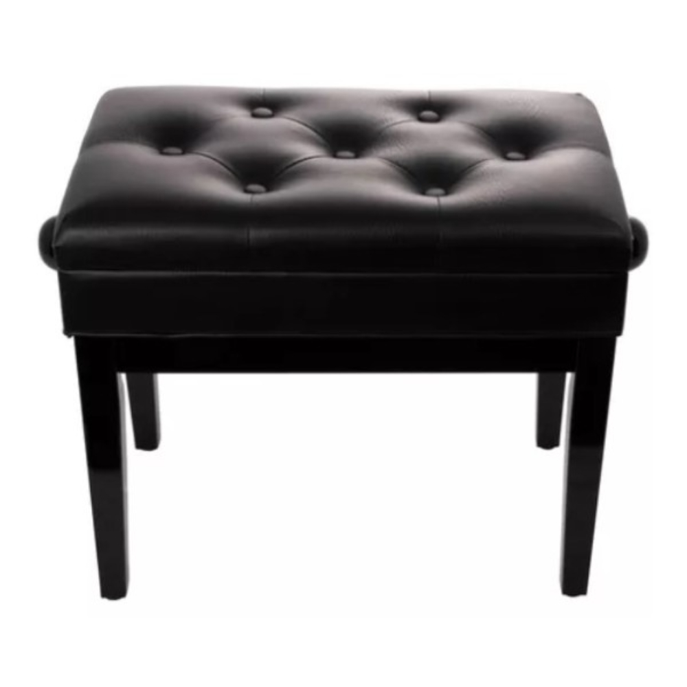 ? The bench is adjustable in height from a minimum of 46cm up to a maximum of 55cm from the ground. The eco-leather seat has a width of 55cm and is 33cm deep and can be opened transforming the bench into a convenient storage compartment in which to for example, store your own sheet music.