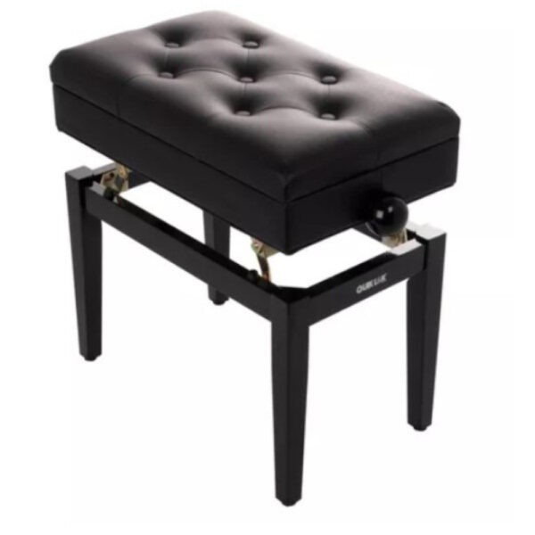 ? PB/106 BKL is the wooden piano bench by Quik Lok height-adjustable seat with upholstered seat in finish capitonn? and sheet music compartment. The wooden bench for PB/106 piano comes with an elegant look given with a glossy black finish and plenty of padding in 5.5cm foam rubber of the seat covered in black eco-leather with a tumbled effect with tufted buttons.