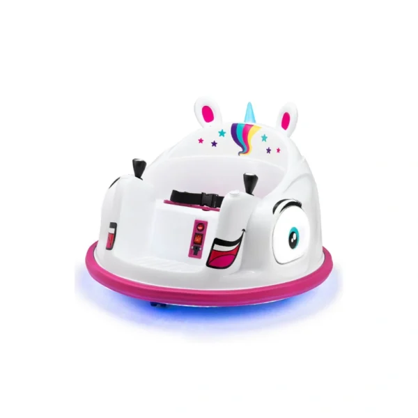 Transform playtime into a magical adventure with the Xootz Unicorn Bumper Car! Designed to ignite imaginations and provide hours of fun, this ride-on car combines whimsical charm with safety and functionality. With its adorable unicorn theme and child-friendly features, the Xootz Unicorn Bumper Car is perfect for toddlers aged 18 months and older. Let your little one experience the joy of independent driving while staying safe and secure. The Unicorn Bumper stands out from the crowd with a vibrant, unicorn-themed design featuring 3D ears, a light up horn and a fluffy tail that will delight young unicorn fans. Complete with pink LED lights under the bumper and glowing eyes, this is the ultimate ride for little dreamers. An adjustable seatbelt keeps kids snug and secure as they navigate at a steady speed of 1.2km/h, and the addition of a parental controller means that adults can take the reigns when necessary. The simple joystick design ensures a user-friendly experience, helping your child develop motor skills and coordination while having fun!