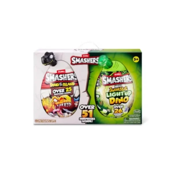 Smash your way to an epic prehistoric adventure with Smashers Dino Island Mega Egg. SMASH your egg to smithereens to uncover the 25 hidden surprises inside this action-packed egg! Search through cotton candy foam, squishy sand and super stretchy slime for your dino pieces! Along the way, look out for a pesky pirate figurine and 4 epic smashers mini eggs that hold exclusive characters! Look closely to uncover the 4 Dino Island stickers and new golden dino skull pencil topper amongst your treasures. Construct your dino parts to discover which Smash-o-saur you?ve discovered! Will you find the mighty T-Rex or stealthy Stegosaurus? What arrrgh ye waiting for! Get smashing to discover your new dangerously epic Smashers Dino!